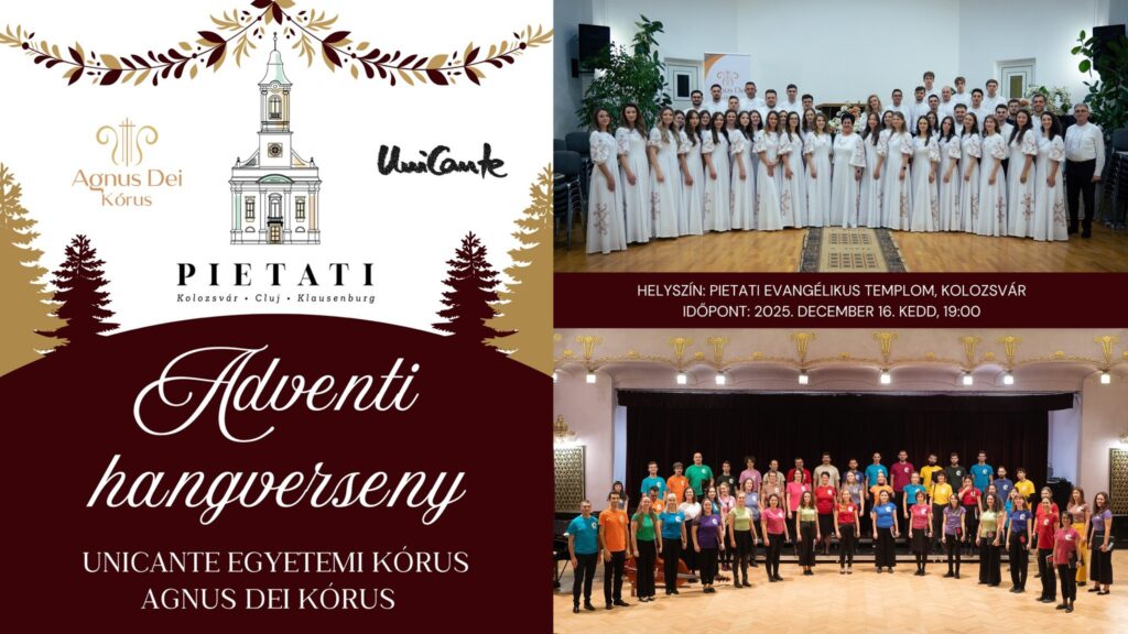 Szeretettel hívunk az Agnus Dei Kórus (karvezető: Kovács Hajnal) és az UniCante Egyetemi Kórus (karvezető: Fekete Miklós) közös adventi hangversenyére.