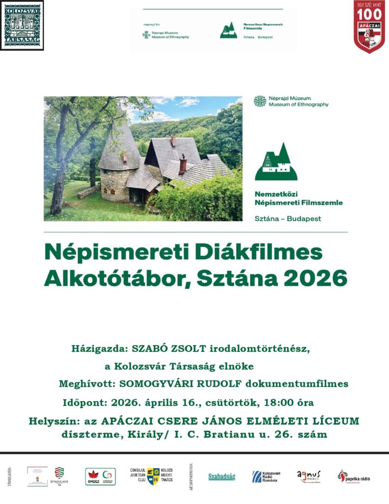 2026. április 16-án, csütörtökön 18:00 órakor a Kolozsvár Társaság és a budapesti Néprajzi Múzeum szervezésében mutatkozik be a Sztánai Népismereti Tábor és a Sztánai Nemzetközi Népismereti Filmszemle.