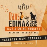 Az Edina & The Cool Cats jazz- és swingkoncertje igazi klubhangulatot teremt – közelről, színpad nélkül, közvetlen kapcsolatban a közönséggel. 🎺🎙️