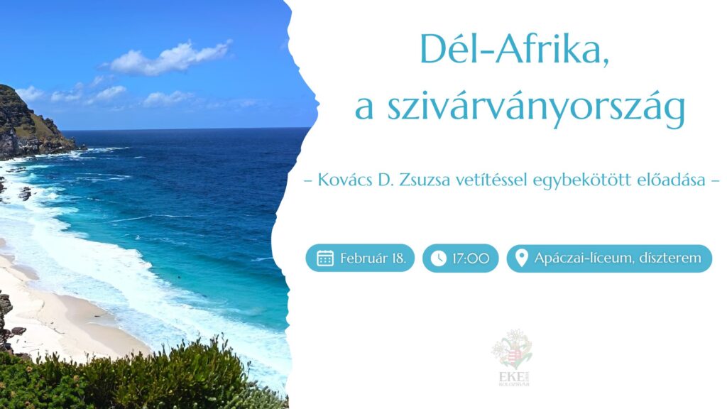 Szeretettel várunk minden érdeklődőt Kovács D. Zsuzsa vetítéssel egybekötött élménybeszámolójára február 18-án 17 órától az Apáczai Csere János Elméleti Líceum dísztermében.