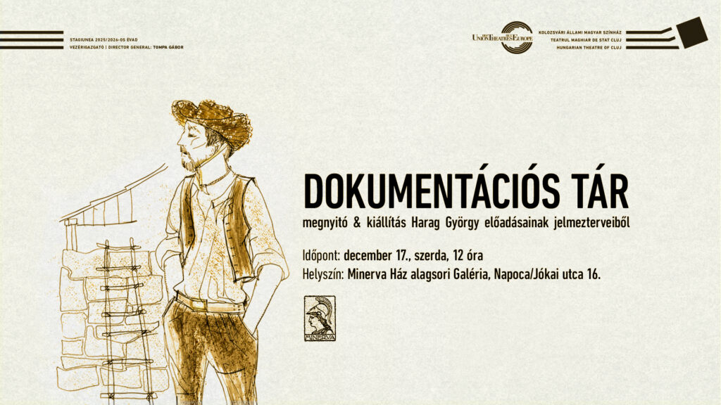 A megnyitó rendezvényre egy Harag György-jelmezterv-kiállítással készülünk, amelynek keretében a kolozsvári színház egykori főrendezője által színpadra állított négy előadás jelmezterveit mutatjuk be, továbbá az érdeklődők kézbe vehetik a Kolozsváron rendezett produkciók korabeli műsorfüzeteit is. A Tornyot választok (1973) jelmezterveit Kölönte Zsolt készítette, míg az emblematikus Egy lócsiszár virágvasárnapja (1975), Csillag a máglyán (1976) és Vágy a szilfák alatt (1977) előadások jelmezeit Schranz Kunovits Edit jegyzi.