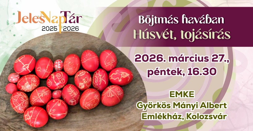 📣 A JelesNapTár hagyományőrző gyermekprogramunk 2026. március 27-én, pénteken, 16.30 órától jelentkezik újra a Györkös Mányi Albert Emlékházban (Kolozsvár, Republicii/Majális u. 5.).