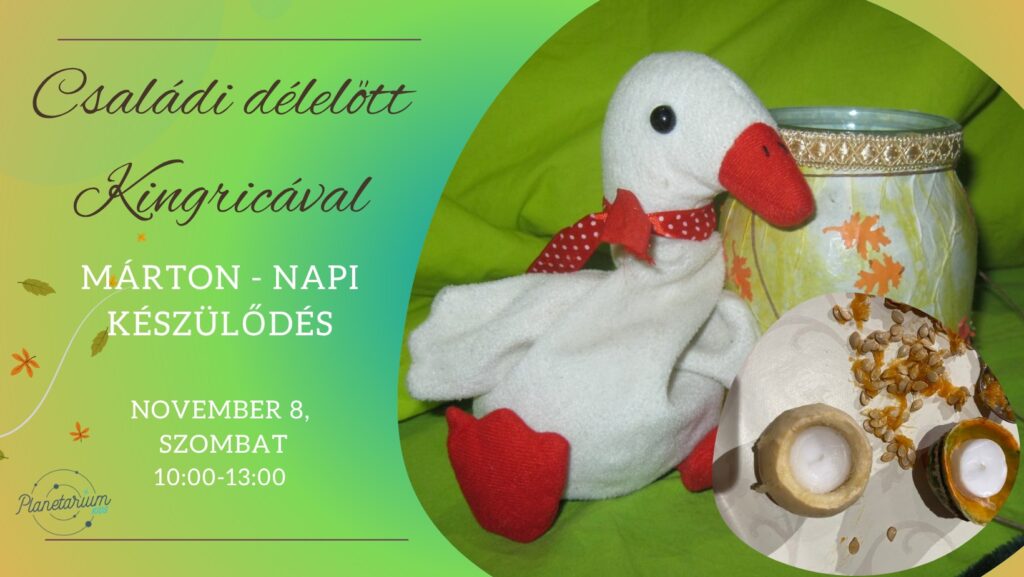 10:30-tól dalolós, mondókázós, játékos foglalkozással vár benneteket Kingrica, illetve, Márton napra készülve, lámpásokat fogunk készíteni.