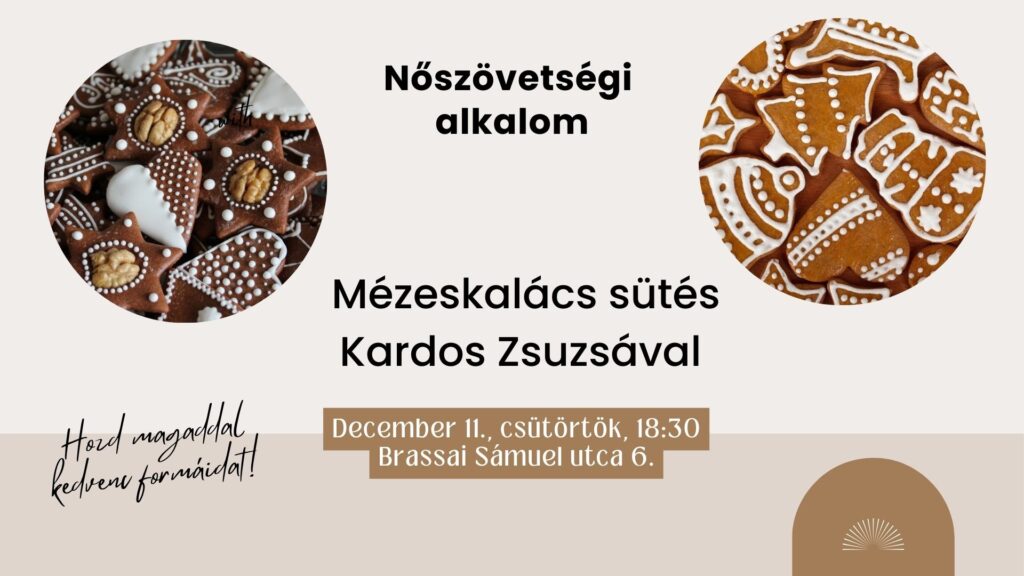 Az unitárius nőszövetség következő eseményén az adventi készülődés jegyében mézeskalácsot sütünk.