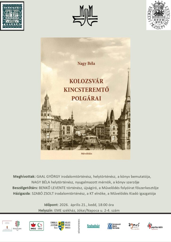 A 19. századi Kolozsvár kincsteremtő polgárairól beszélgetünk 2026. április 21-én, kedden 18:00 órától.