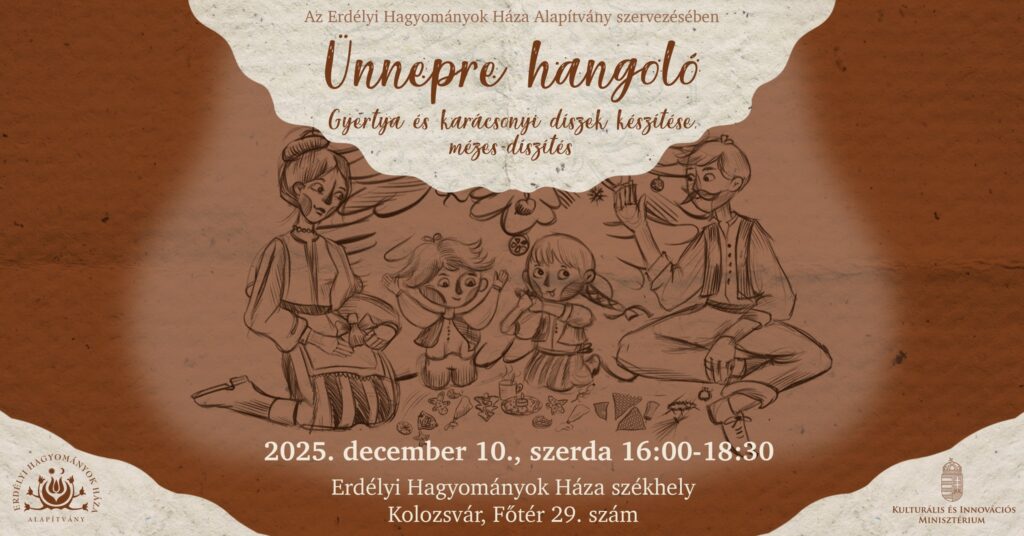 📸Az eseményen fotó- és filmfelvétel készülhet. A részvétellel a résztvevők beleegyeznek, hogy az itt készült felvételeket az Erdélyi Hagyományok Háza Alapítvány – kizárólag programjainak népszerűsítése céljából – használhatja.