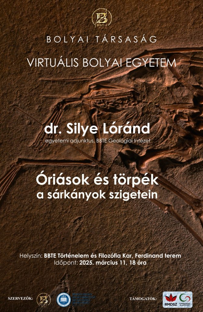 Március 11-én a Virtuális Bolyai Egyetem meghívottja dr. Silye Lóránd, a Geológiai Intézet adjunktusa: Óriások és törpék a sárkányok szigetein címmel tart előadást 18 órától, a BBTE Történeti Intézetének (Jókai/Napoca u. 11) Ferdinand-király dísztermében.