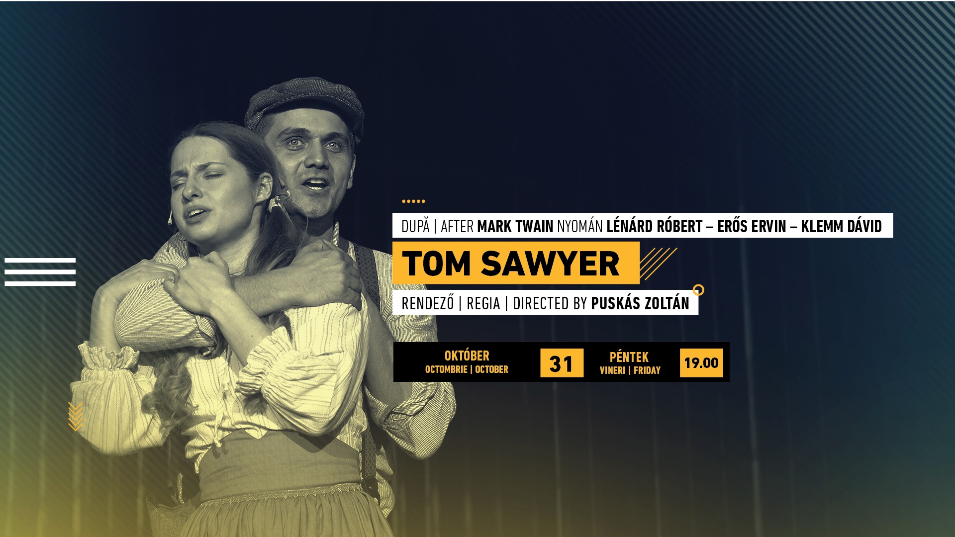 családi musical 🎶🎵 Mark Twain nyomán Lénárd Róbert – Erős Ervin – Klemm Dávid: TOM SAWYER 🕗 Időtartam: 1h 45’ szünet nélkül 🗣 Magyar nyelvű előadás, román és angol felirattal. A Mississippi partján fekvő St. Petersburg kisvároskában él Tom Sawyer, a csibész, akinek élete egy véget nem érő kaland: iskolakerülés, csínytevések, a felnőttek állandó bosszantása. […]