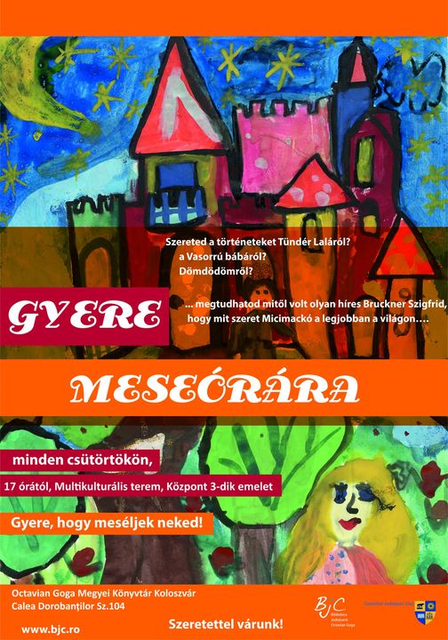 Magyar nyelvű Meseóra 3-7 éves gyerekek számára minden csütörtökön 17 órától a Megyei Könyvtár nyugati szárnyának 3. emeletén, a Multikulturális részlegen!