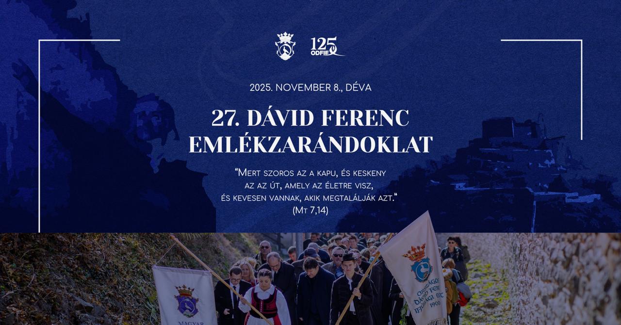 A Magyar Unitárius Egyház, az Országos Dávid Ferenc Ifjúsági Egylet, valamint a Délnyugat-Erdélyi Unitárius Szórványegyházközség nevében szeretettel hívjuk unitárius és más felekezetű testvéreinket november 8-ra, a 27. Dávid Ferenc Emlékzarándoklatra, Dévára.--- PROGRAM12.00 – Ima a felvonó előtti téren.13.00 – Istentisztelet, majd ünnepi műsor.14.00 – Köszöntőbeszédek.Gyertyagyújtás, valamint virágok és koszorúk elhelyezése az emlékcellánál.15.30 – Levonulás a várból […]