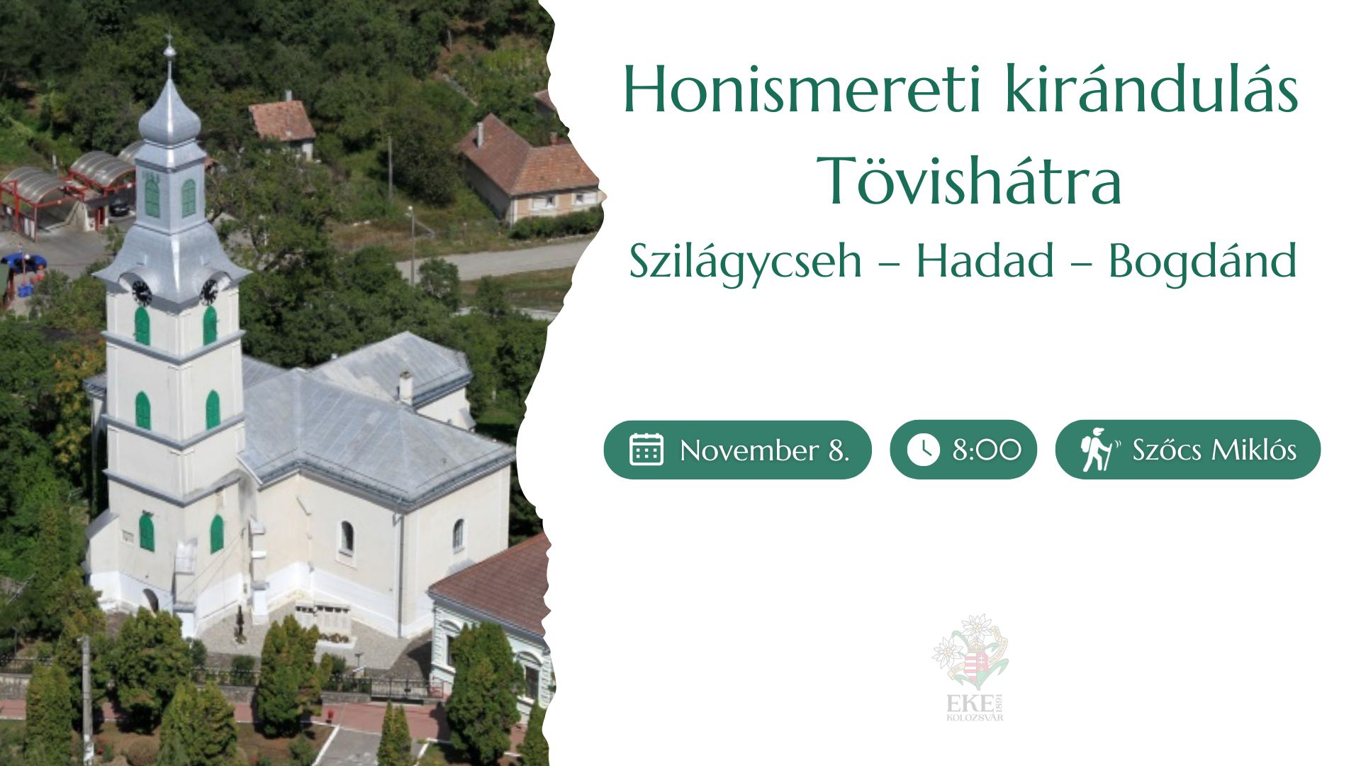 Szeretettel várunk minden érdeklődőt honismereti kirándulásunkra, amely során Tövishát településeit fogjuk meglátogatni az alábbi útvonalon: Szilágycseh – Hadad – Bogdánd. Az utazást kisbusszal szervezzük. Indulás: november 8-án, szombat reggel 8:00-kor a volt FLIP üzlettel (Mihai Viteazul (volt Széchenyi) tér 9A szám) szembeni parkolóból. A buszban a helyek száma korlátozott, ezért előzetesen kell jelentkezni, legkésőbb november […]
