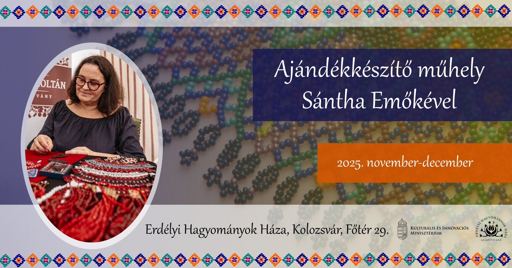 📣Novembertől folytatjuk a gyöngyfűző tanfolyamunkat kolozsvári székhelyünkön. A heti rendszereséggel megszervezett ajándékkészítő műhelyfoglalkozások során Sántha Emőke kalauzolja a résztvevőket a gyöngyfűzés és gyöngyhímzés rejtelmeibe. Szeretettel várjuk az összes olyan 16 évet betöltött személyt, aki a népművészetben használt hagyományos technikák elsajátításával szeretnének maguknak és szeretteiknek egyedi ékszereket készíteni. 📌Jelentkezni a következő kérdőív kitöltésével lehet: https://forms.gle/fiYgG4KCH8vhRLD58 Hozzájárulás: […]