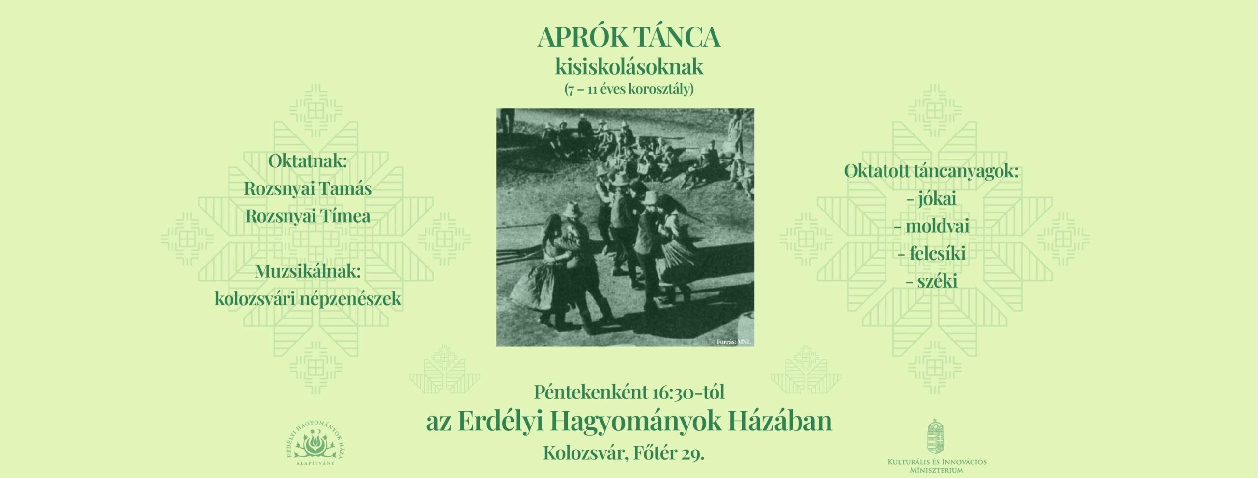 Az idei évadtól egy új programmal várjuk a kisiskolásokat (7–10 éves korosztály): elindult az aprók tánca, az Erdélyi Hagyományok Háza kolozsvári székhelyén, heti rendszerességgel. 🎉👧🧒 ✨„Helyet, helyet nekünk is ha kicsikék vagyunk is”✨ A néptánccal való ismerkedést sosem lehet elég korán kezdeni – ez az alkalom lehetőséget ad arra, hogy a gyerekek játékos formában, közösségben […]