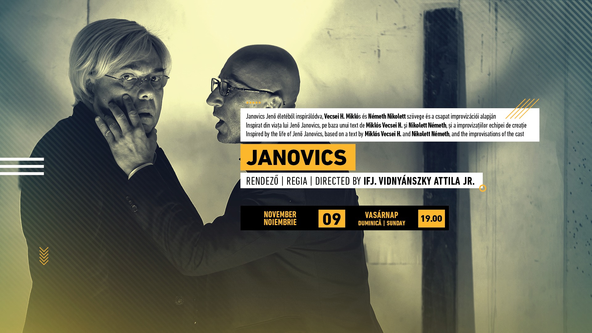 Janovics Jenő életéből inspirálódva, Vecsei H. Miklós és Németh Nikolett szövege és a csapat improvizációi alapján Egy kísérletnek gondolom a Janovics-előadást, mivel ott kezdődik majd, ahol a Barbárok befejeződött. Akár egy sorozat második része, egy láncszem vagy inkább egy kereszteződés. Ahogy a Barbárok, úgy a Janovics sem életrajzi előadás, igyekszik minél távolabb kerülni a színház […]