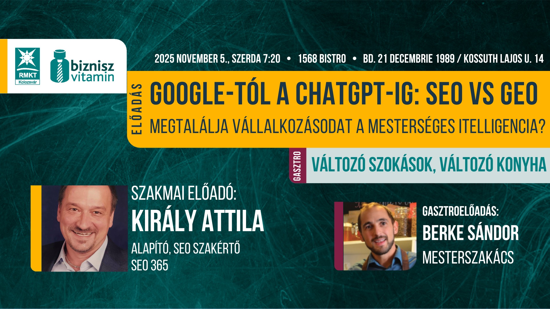 SEO vs GEO – Mit tehetsz ma, hogy a mesterséges intelligencia megtalálja a vállalkozásodat? A mesterséges intelligencia új szabályokat ír az online láthatóságban. A SEO már nem elég önmagában – elindult a GEO (Generative Engine Optimization) korszaka, ahol az számít, milyen forrásokból dolgoznak az MI-rendszerek: ChatGPT, Gemini, Copilot és társaik. Ebben az előadásban gyakorlati példákon […]