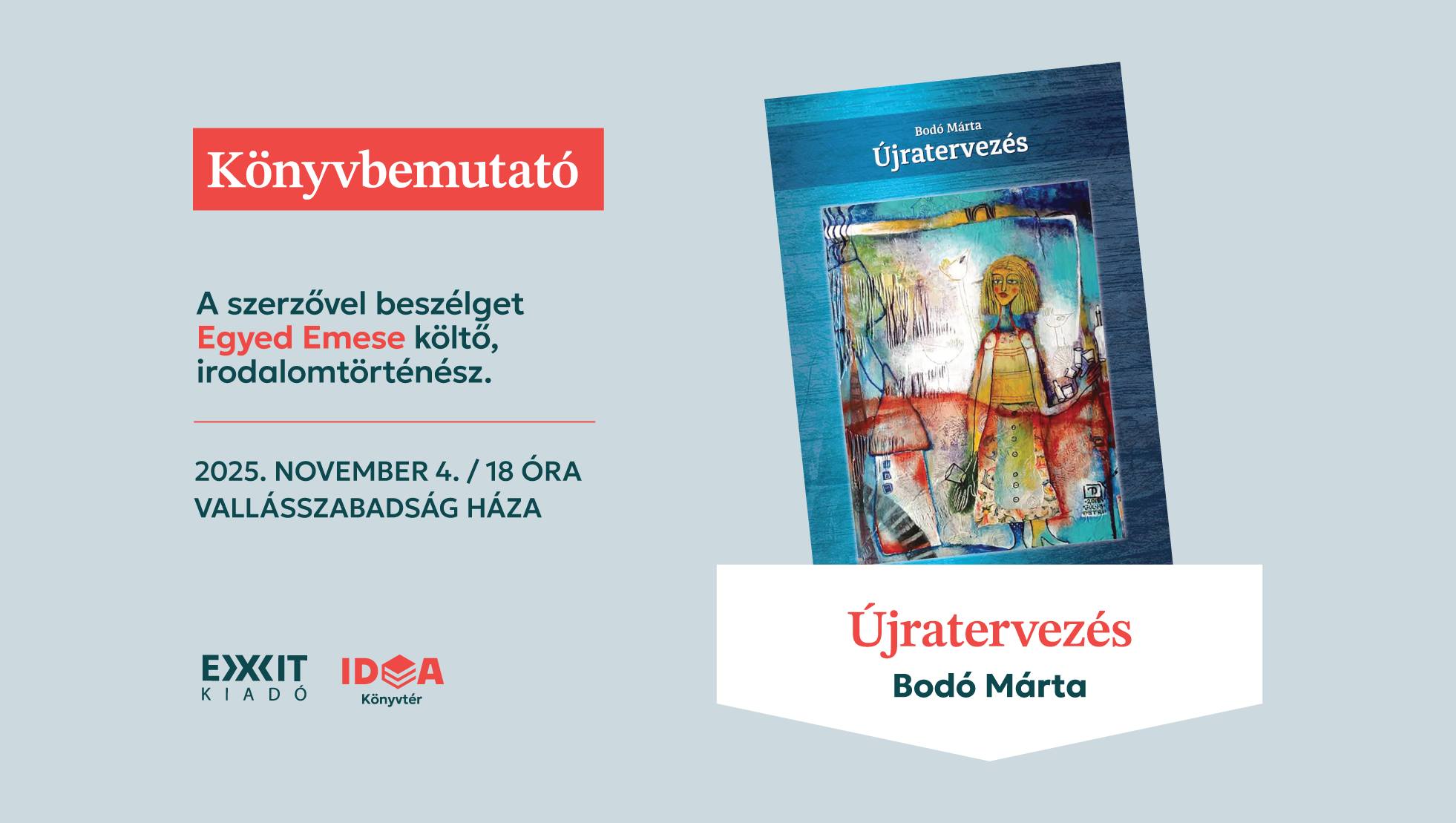 Szeretettel várunk minden érdeklődőt Bodó Márta Újratervezés című könyvének bemutatójára november 4-én 18 órától a Vallásszabadság Házába! A szerzővel Egyed Emese költő, irodalomtörténész beszélget. Énekkel közreműködnek Török Szilvia és tanítványai, zongorán kísér Adela Pleșca. 📚 A kötet az Exit Kiadó gondozásában jelent meg. 📌 Helyszín: Kolozsvár, Vallásszabadság Háza, konferenciaterem, Kossuth Lajos utca (December 21. sugárút), […]