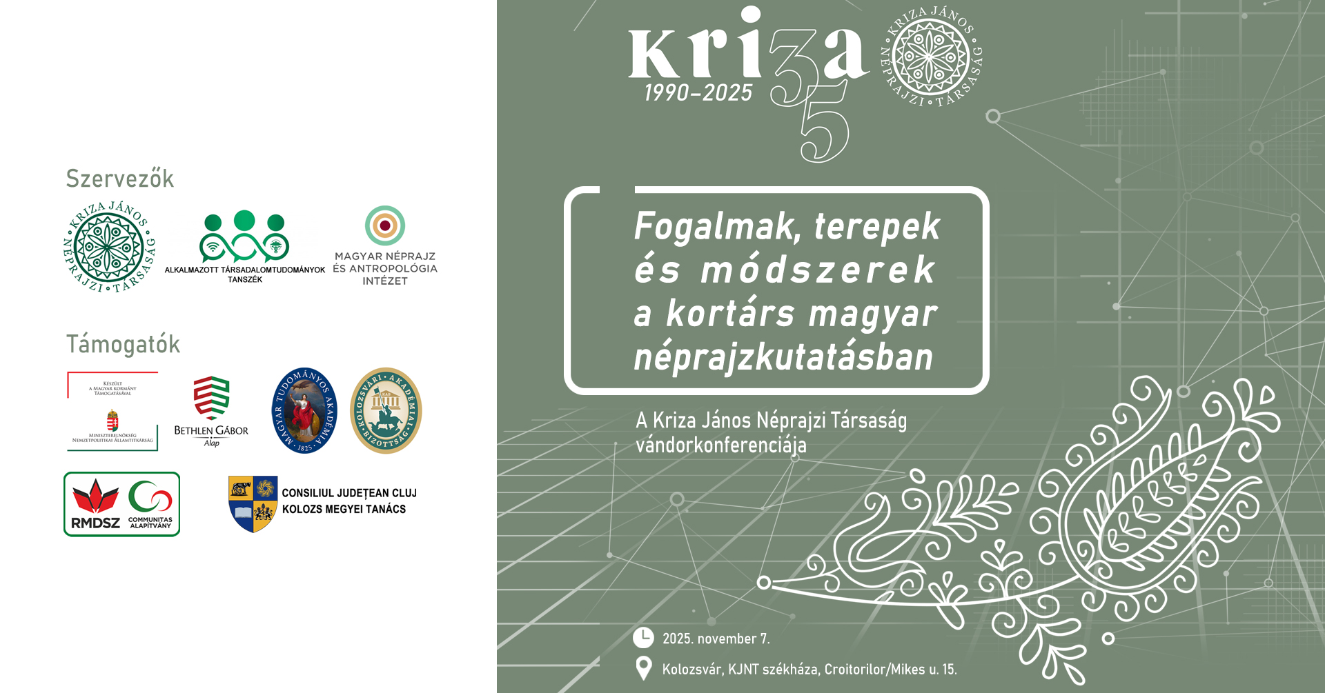 09.30–10.00 Regisztráció 10.00–10.20 A konferencia megnyitója, köszöntőbeszédek: Jakab Albert Zsolt, elnök, Kriza János Néprajzi Társaság Vákár István, alelnök, Kolozs Megyei Tanács Plenáris előadás 10.20–11.00 Szijártó Zsolt: A médiaantropológia lehetőségei (PTE Kommunikáció- és Médiatudományi Tanszék, Pécs, egyetemi tanár) 1. Hagyományos terep – újfajta viszonyok Moderátor: Vajda András 11.00–11.20 Gagyi József: Organikus-organizált valóságok terepen való kutatása. Néhány […]