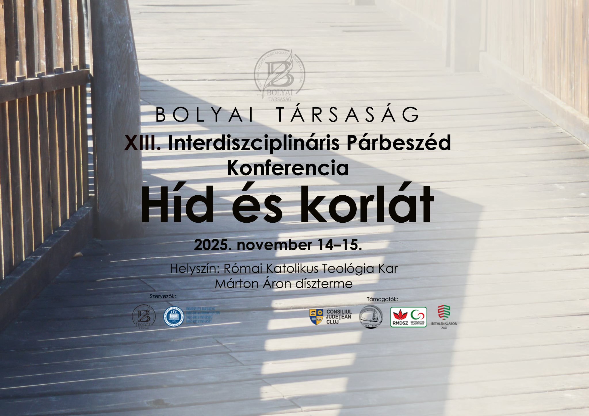A Bolyai Társaság idei konferenciája a határok és kapcsolódások kérdését járja körül. A kétnapos rendezvény a különböző tudományterületek párbeszédét ösztönzi, és azt vizsgálja, hogyan alakulnak ki és miként tarthatók fenn a megértés, a fordítás és a közvetítés határai a tudományos gondolkodásban. 📅 2025. november 14–15. 📍 Római Katolikus Teológia Kar, Márton Áron díszterem