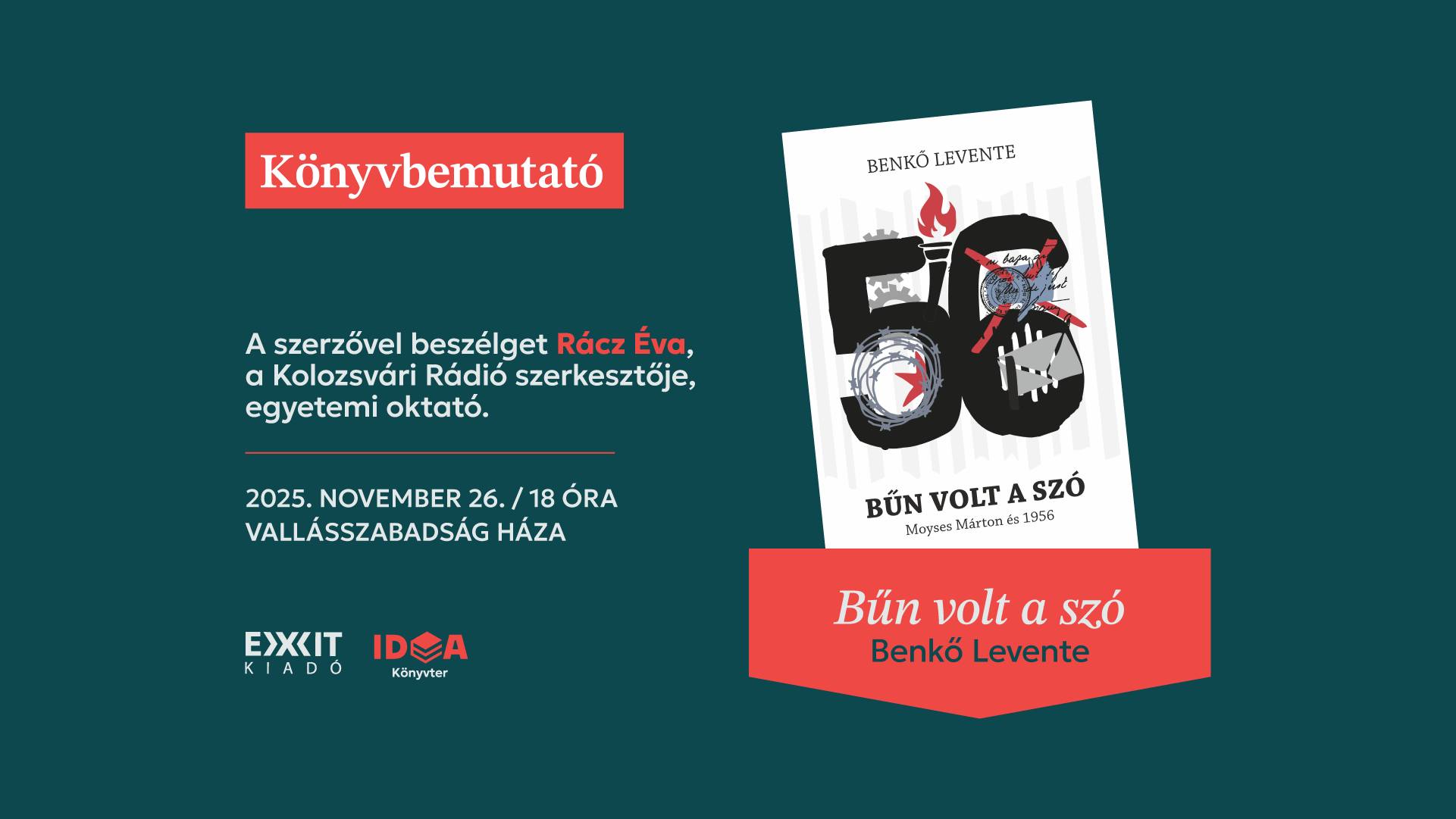 Bemutatjuk Benkő Levente Bűn volt a szó. Moyses Márton és 1956 című könyvét november 26-án 18 órától a Vallásszabadság Házában. A bemutatón a szerzővel Rácz Éva, a Kolozsvári Rádió szerkesztője, egyetemi oktató beszélget. Szeretettel várunk minden érdeklődőt! 📖 A könyvről: 1970. február 13-án Brassóban a Román Kommunista Párt székháza előtt egy nagyajtai magyar fiatalember benzinnel […]