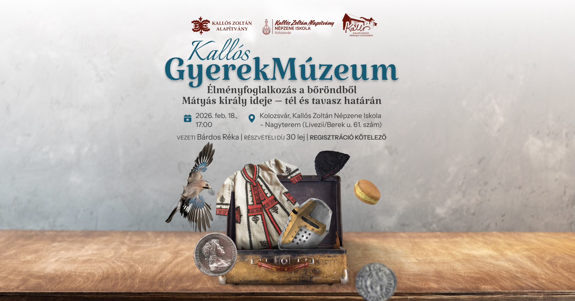 ‼️Erre az alkalomra a helyek BETELTEK‼️ ❗ Figyelem❗ A következő fogalkozásokra bérlet is váltható, személyesen, a következő GyerekMúzeum alkalmával. Bőröndös múzeumpedagógiai sorozat Kolozsváron! 🎒 Minden hónap egyik szerdáján a Kallós Gyűjtemény kincsei kelnek életre dalokkal, játékokkal, ízekkel – és valódi néprajzi tárgyakkal. 🎶🥣 A februári alkalom témája: Mátyás király ideje – tél és tavasz határán […]