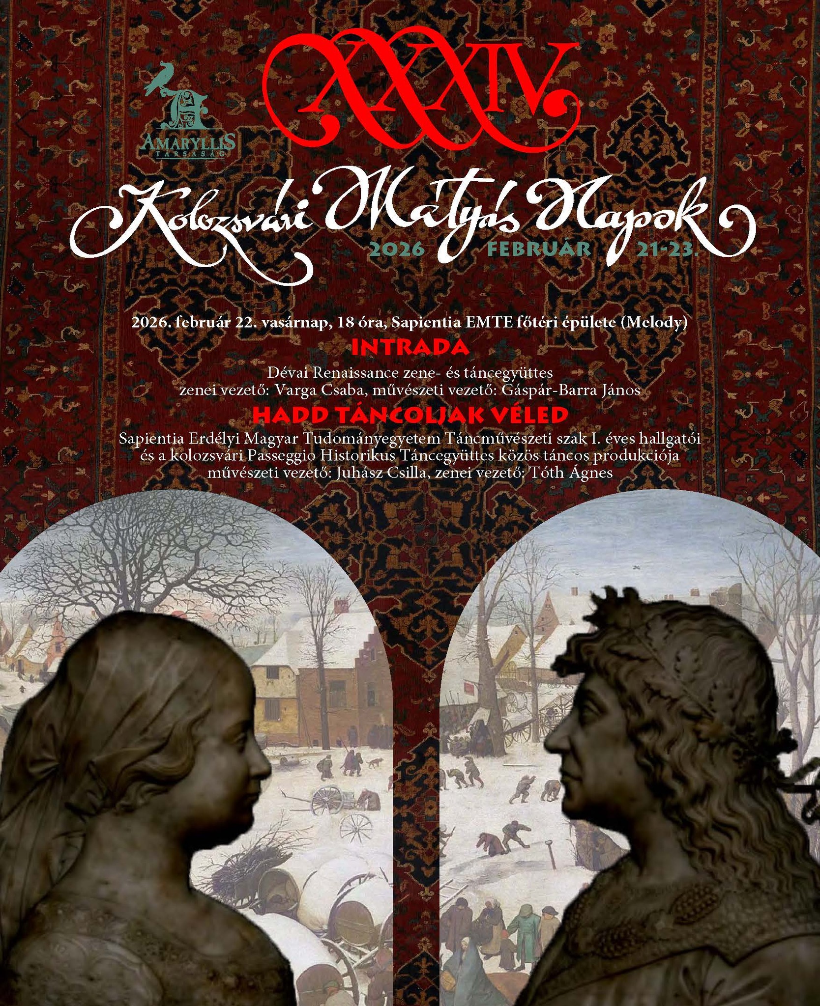 INTRADA Dévai Renaissance zene- és táncegyüttes zenei vezető: Varga Csaba, művészeti vezető Gáspár-Barra János HADD TÁNCOLJAK VÉLED Sapientia Erdélyi Magyar Tudományegyetem Táncművészeti szak I. éves hallgatói és a kolozsvári Passeggio Historikus Táncegyüttes közös táncos produkciója művészeti vezető: Juhász Csilla
